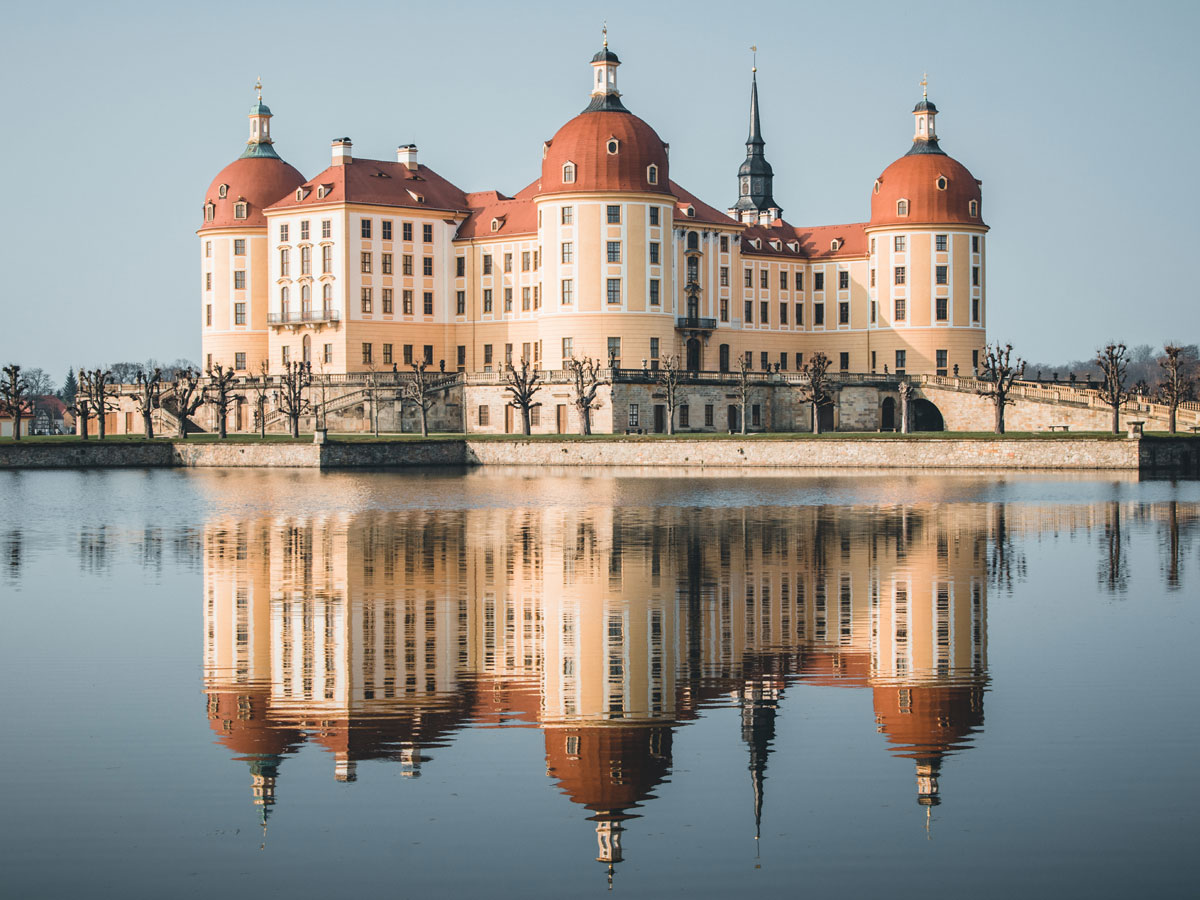 1723 begann Pöppelmann im Auftrag Augusts des Starken, Schloss Moritzburg vom Renaissancebau zum barocken Jagd- und Lustschloss umzubauen. Foto: Patrick Eichler (DML-BY)