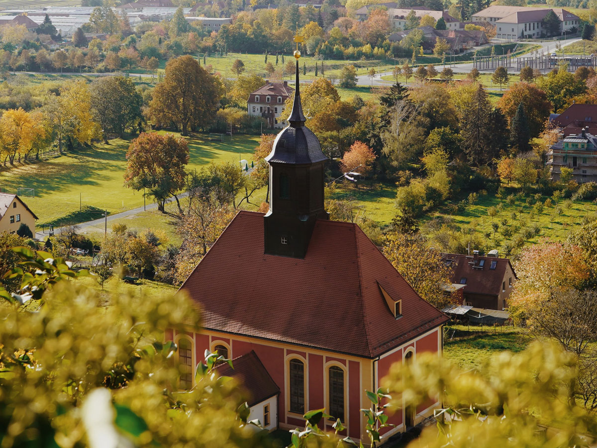 Die barocke Pillnitzer Weinbergkirche wurde zwischen 1723 und 1725 nach Plänen Pöppelmanns erbaut. Foto: Alina Werner (DML-BY)