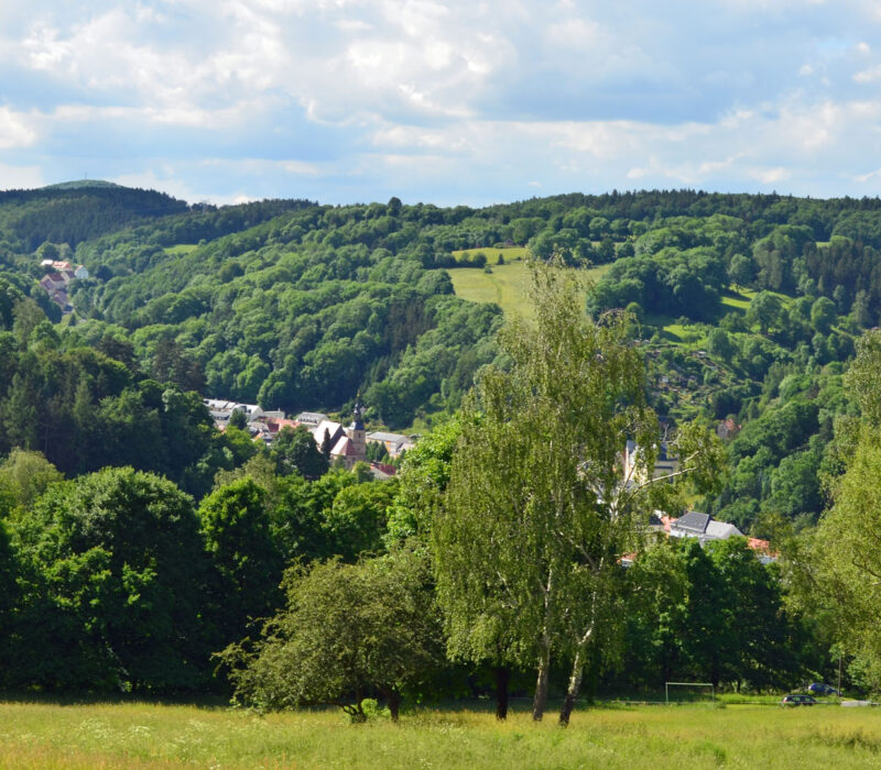 Von den Aussichtspunkten des 17 Kilometer langen Rundwanderweges lässt sich Glashütte auf die Dächer schauen.