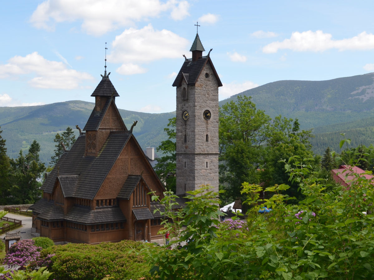Im polnischen Karpacz im Riesengebirge wurde im 19. Jahrhundert die mittelalterliche norwegische Stabkirche Wang wiederaufgebaut. Foto: Ewa/stock.adobe.com