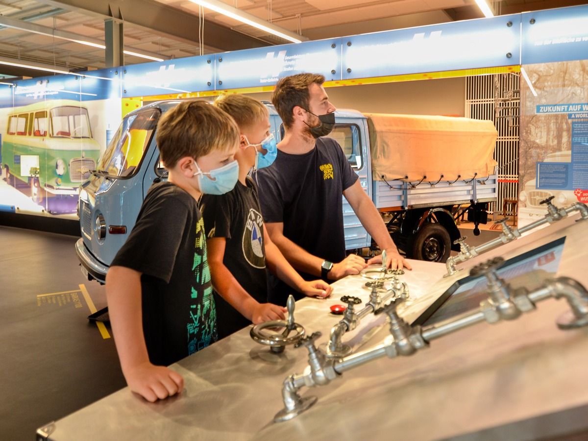 Im gesamten Museum finden sich auch verschiedene Modelle des DDR-Kleintransporters Barkas, der in Frankenberg gebaut wurde. Mit einem Rollbrett lässt sich gar selbst Mechaniker spielen und rücklings unter das Auto kriechen. Oder man versucht gleich daneben, sich interaktiv sein eigenes Barkas-Modell zu bauen.
