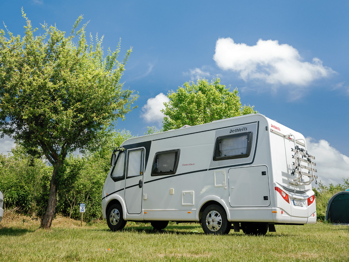 Stellplätze mitten im Grünen zeichnen den Platz an der Schladitzer Bucht aus. Foto: Stephan Flad