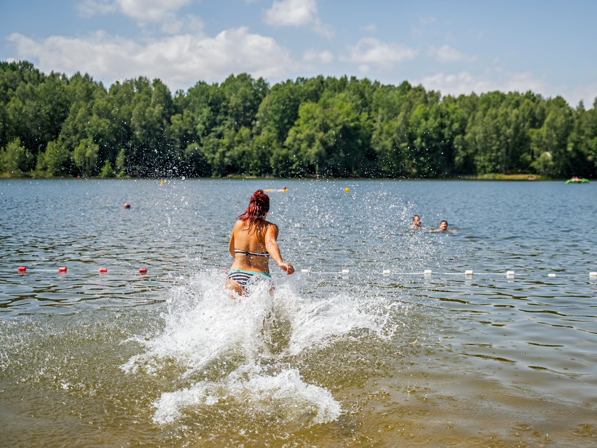 Der erfrischende Badesee liegt nur wenige Meter vom Campingplatz entfernt. Foto: Tourismus und Sport GmbH