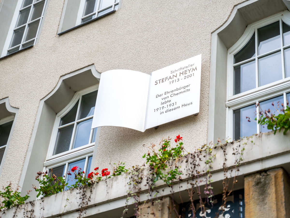 Wer sich die Zeit nimmt, von Nebenstraße zu Nebenstraße zu schlendern, bemerkt in der Hofmannstraße 58 bis 60 ein weiteres beeindruckendes Jugendstilgebäude. Heute ist das hell verputzte Haus von 1912 mit seinen zwei Türmchen nach dem Schriftsteller Stefan Heym benannt. 1913 in Chemnitz geboren, lebte er als Kind und Jugendlicher mit seiner Familie in einer Wohnung im Erdgeschoss.