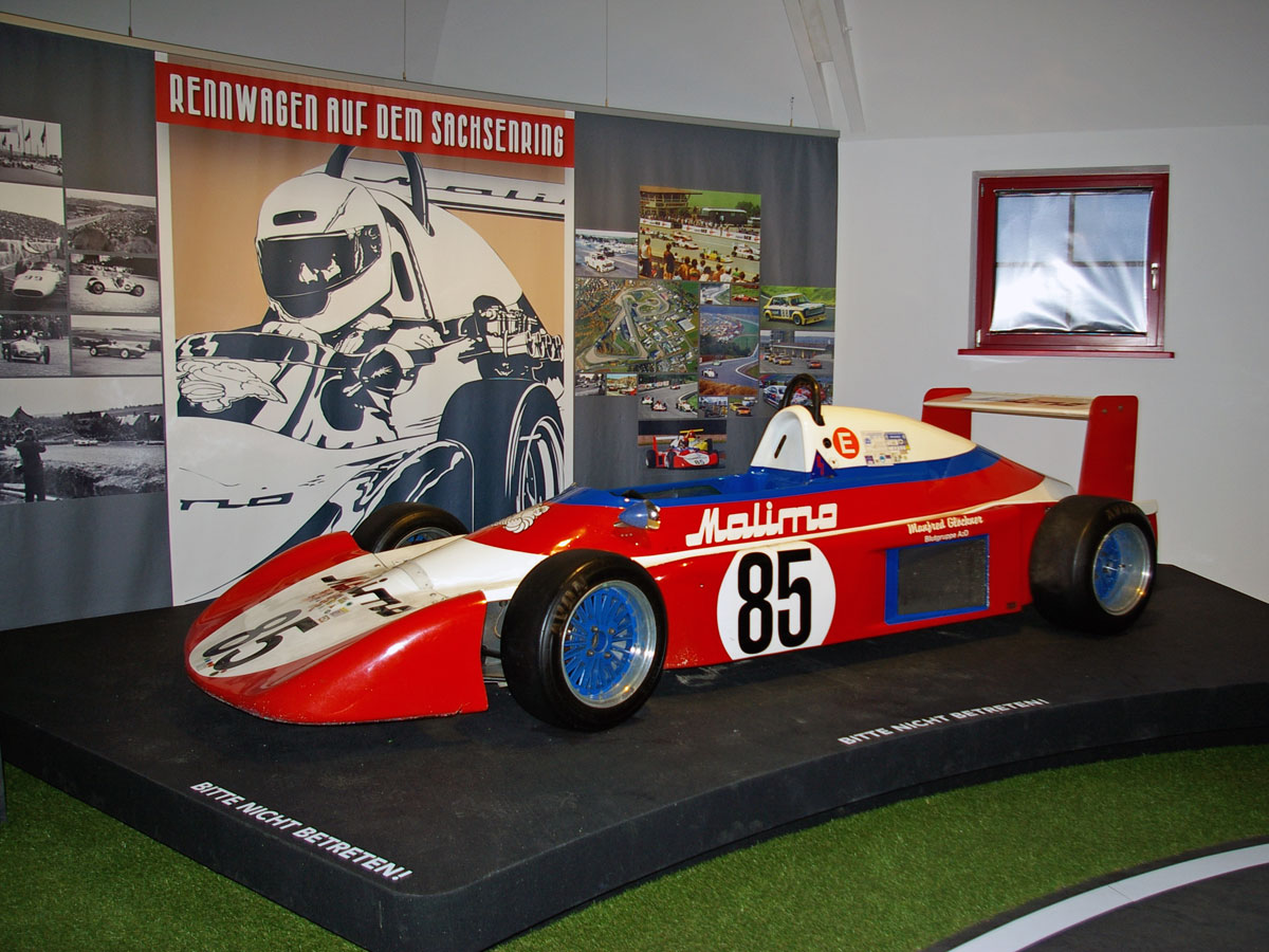 Rennwagen in der Sachsenring-Ausstellung des Textil- und Rennsportmuseums Hohenstein-Ernstthal