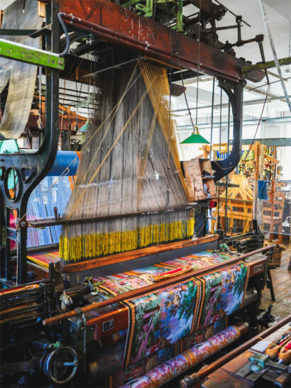 Die altgedienten Jacquard-Webstühle stehen heute in der Schauwerkstatt und werden bei Führungen, Festen und für eine eigene kleine Museumsproduktion regelmäßig in Gang gesetzt. „Dann lebt die Arbeitswelt von damals wieder auf“, schwärmt Marina Palm. Doch auch wenn die Webstühle stillstehen, riecht man im Websaal noch immer die Maschinenschmiere in der öldurchtränkten Dielung.