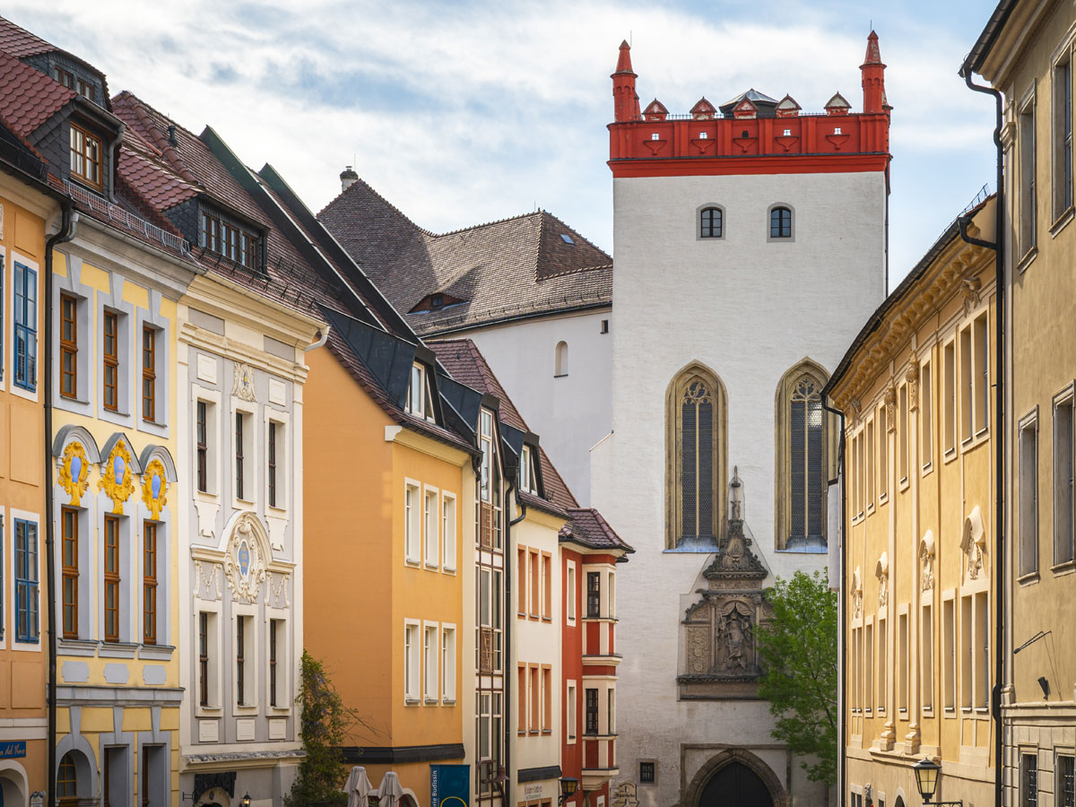 Übrigens hat auch Bautzen einen richtig schiefen Turm, beinahe wie im italienischen Pisa. Der 56 Meter hohe Reichenturm am Ende der Reichenstraße neigt sich um 1,41 Meter in nordwestliche Richtung. Wer sich nicht nur von außen davon überzeugen will, kann von April bis Oktober täglich zwischen 10 und 17 Uhr zur Aussichtsplattform hinaufsteigen.