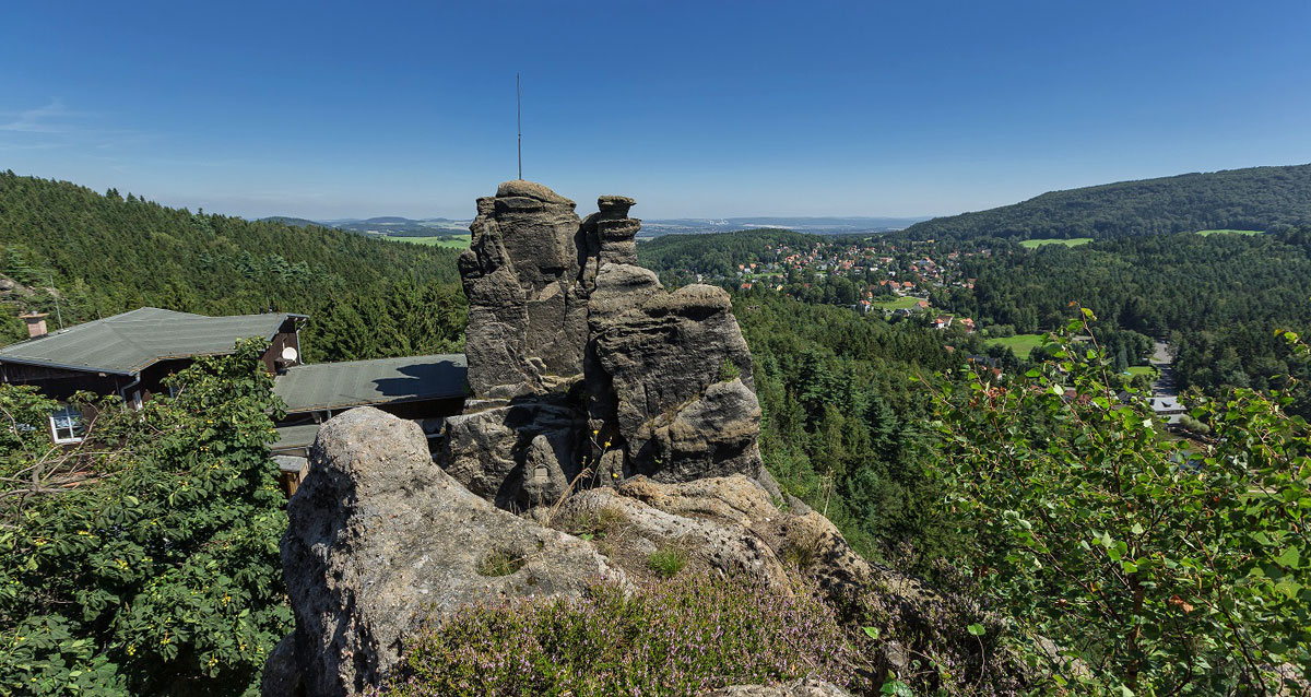 Von den Nonnenfelsen bietet sich ein weiter Blick aufs Zittauer Gebirge. Foto: Tourismuszentrum Naturpark Zittauer Gebirge