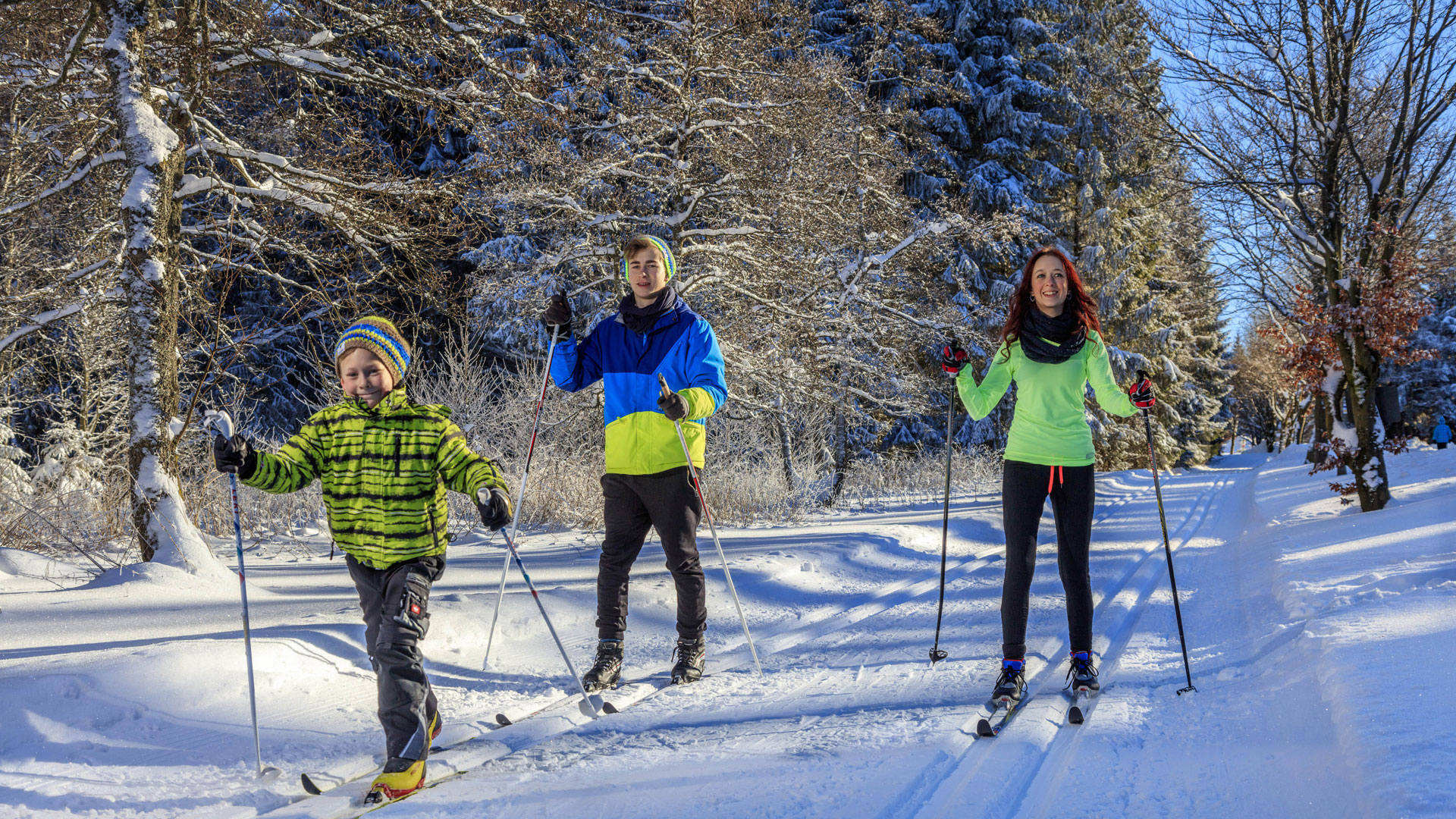 In der Skiwelt Schöneck sind kurze Wege Trumpf. Vom Parkhaus oder dem praktischen Bahn-Haltepunkt „Ferienpark“ gelangen kleine und große Skifans in wenigen Minuten zu Pisten, Loipen und Rodelhang. Und die Aussicht hier auf dem „Balkon des Vogtlandes“ ist bei sonnigem Wetter grandios.