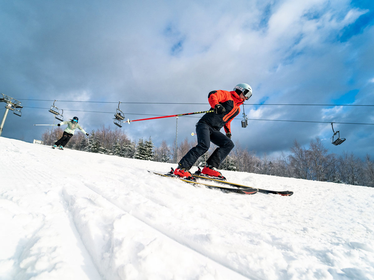 Das Alpinareal direkt hinter dem IFA Ferienpark kann komplett beschneit werden. Hier beginnt die schwungvolle, über 800 Meter lange Fahrt den Hang Hohe Reuth hinunter: Rote und blaue Pisten führen zur Talstation, dem tiefsten Punkt der Schönecker Skischaukel.