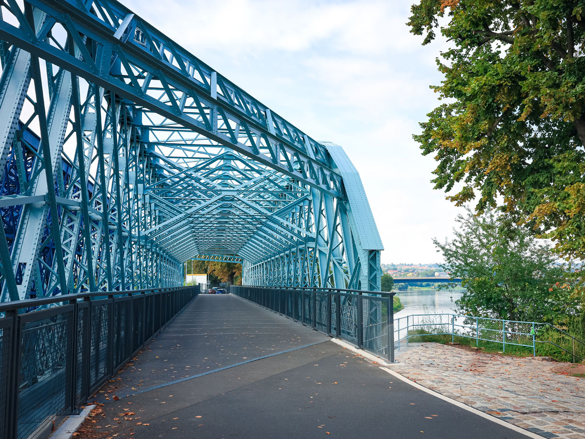 Der Elberadweg führt über das „kleine Blaue Wunder“ am Alberthafen in Dresden. Foto: stock.adobe.com/ke._.si