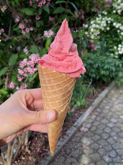 In Gohlis lohnt sich auch ein kleiner Abstecher von der Dorf- in die Südstraße. In Frabel’s Eiscafé wird ganz nach individuellen Wünschen mit frischen Zutaten Softeis in über 365 Sorten kreiert – klingt ungewöhnlich, ist aber tatsächlich möglich.