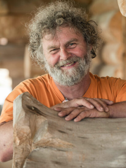 Idyllisch mitten im Wald stehen auf einem Hügel Blockhäuser aus ganzen Baumstämmen, gebaut nach nordamerikanischem Vorbild. Eines aber unterscheidet sie von anderen Häusern: ihre reiche Verzierung mit Schnitzereien, die Künstler mit Kettensägen kreiert haben.