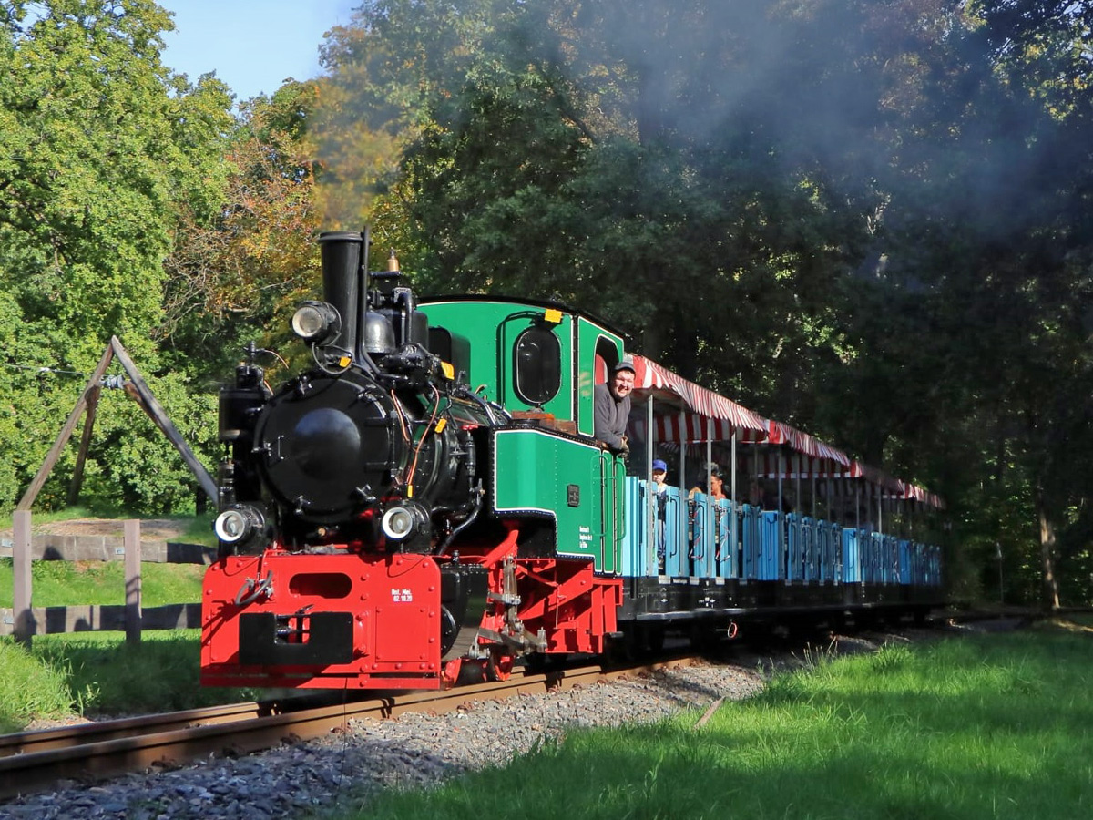 Wer im Chemnitzer Küchwald unterwegs ist, sollte unbedingt eine Fahrt mit der Parkeisenbahn einplanen. Seit 70 Jahren dreht sie hier ihre Runden. Nach dem traditionellen Saisonstart zu Ostern fahren die Züge bis Anfang November täglich außer montags vom Bahnhof an der Küchwaldwiese auf einem 2,3 Kilometer langen Rundkurs durch den Park.