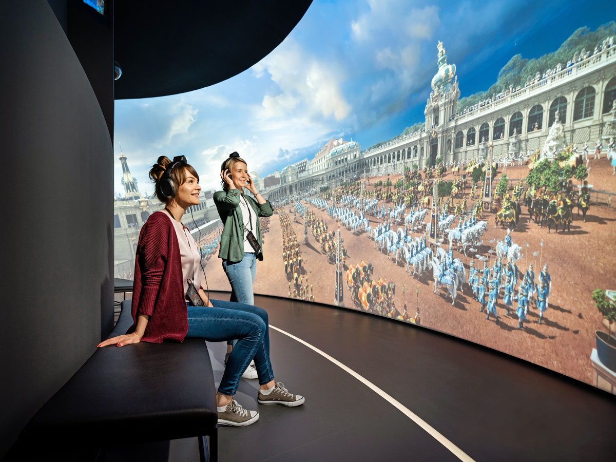 Die „Zwinger Xperience“ zeichnet die Entstehungsgeschichte des Dresdner Zwingers mit Panoramaprojektionen und Virtual Reality nach. Foto: Thomas Schlorke