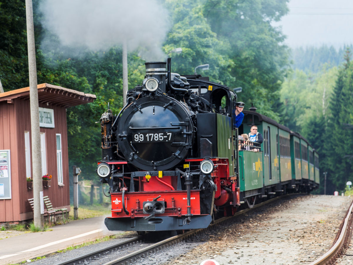Im oberen Erzgebirge ist die Fichtelbergbahn zu Hause. Sie dampft in die höchstgelegene Stadt Deutschlands, nach Oberwiesenthal. Beginn der Fahrt ist in Cranzahl.