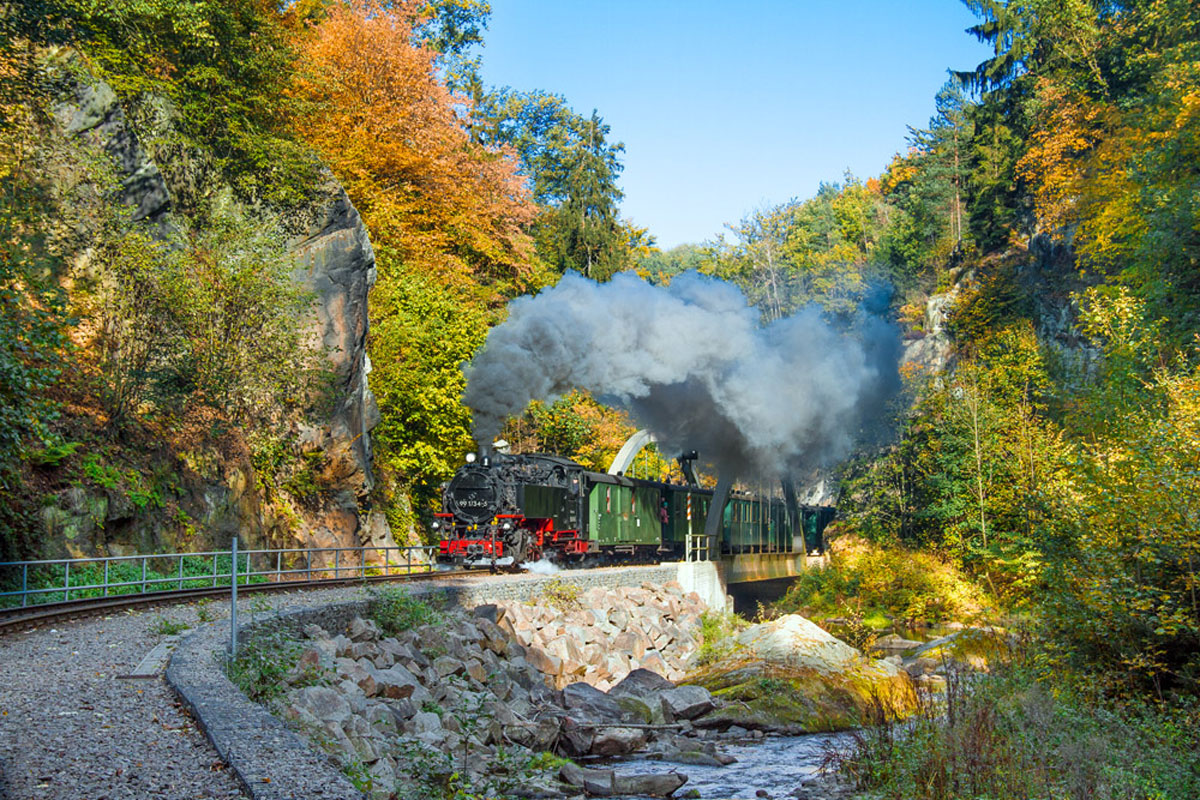 Tipp für Fotofans: Die Route der Weißeritztalbahn gilt wegen ihrer landschaftlichen Vielfalt als eine der schönsten Eisenbahnstrecken Europas.