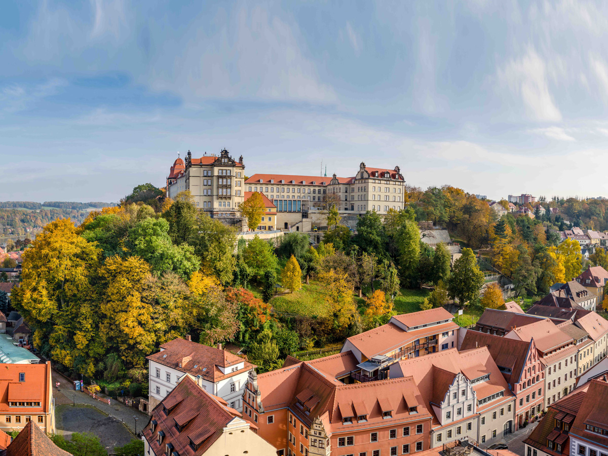 Schräg gegenüber führt der Weg Richtung Schlossberg und zu der 100-stufigen Treppe am Fuße der Festung Sonnenstein. Ein Teil der sanierten Burg-Festung beherbergt heute das Landratsamt, doch die steinernen Bastionen sind noch immer zu besichtigen. „Hoch oben zeigt sich die beste Aussicht. Das wusste auch schon Canaletto zu schätzen und malte zahlreiche Bilder aus dieser Perspektive, als er von 1753 bis 1755 im Auftrag des Kurfürsten Friedrich August II. hier weilte“, erzählt Gabriele Gerhardt.
