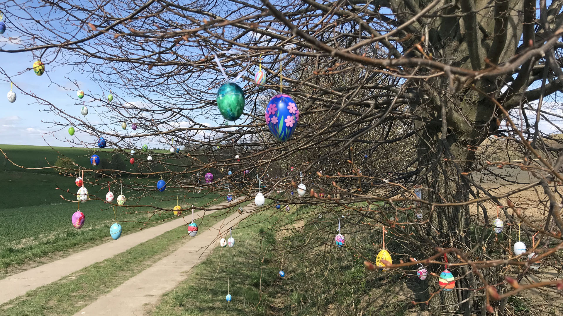 Den Ostereierpfad Lichtenau bei Chemnitz schmücken tausende bunt verzierte Ostereier – ein perfekter Spaziergang für Familien.