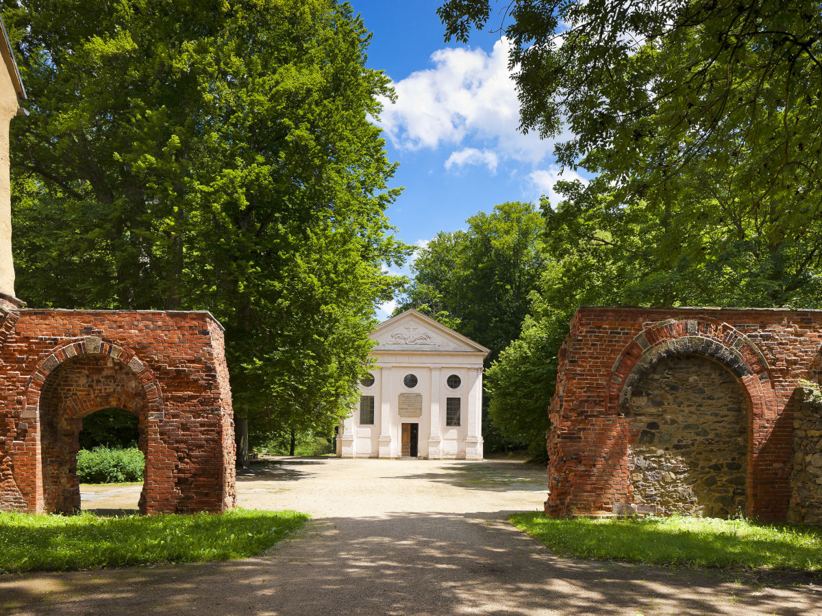 Das Mausoleum: Kurfürst Johann Georg II. veranlasste 1676 den Bau einer barocken Gedächtniskapelle durch Wolf Caspar von Klengel, aber erst reichlich 100 Jahre später, im Jahr 1787, konnte Christian Adolph Franck den Bau im klassizistischen Stil vollenden. Foto: Sylvio Dittrich