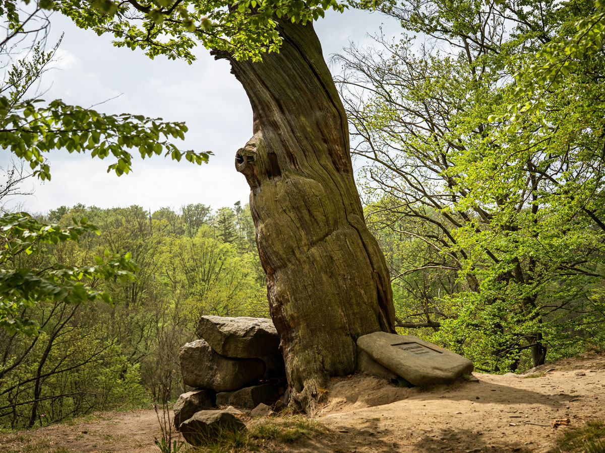 An den Resten einer alten Eiche befindet sich der steinerne Altar von „Hermanns Denkmal“. Foto: Matthias Weber