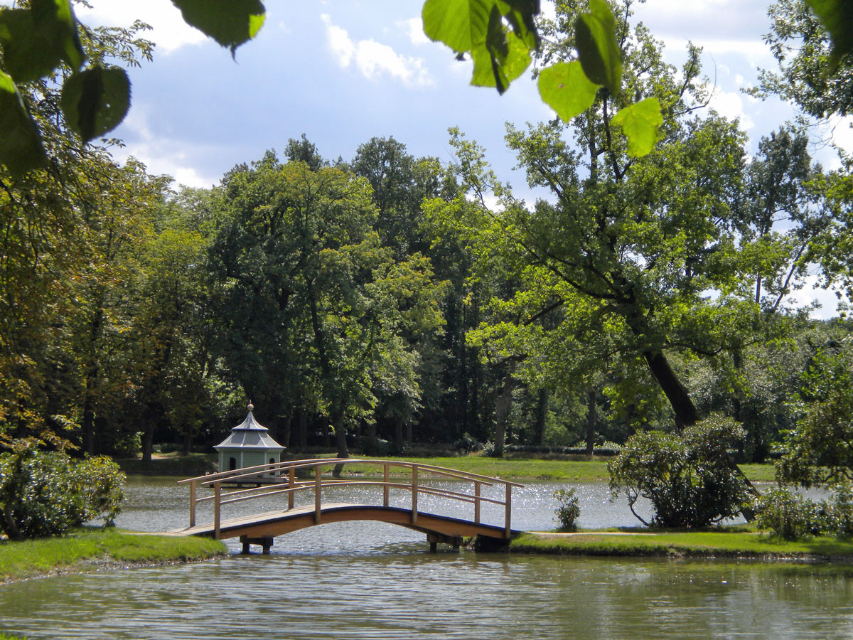 Eine kleine Brücke verbindet am Inselteich das Ufer mit der Elisabethinsel. Foto: Lutz Pfennig