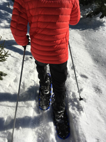 Schneeschuhe und Teleskopstöcke für eine geführte Tour können ausgeliehen werden. Foto: M. Weber