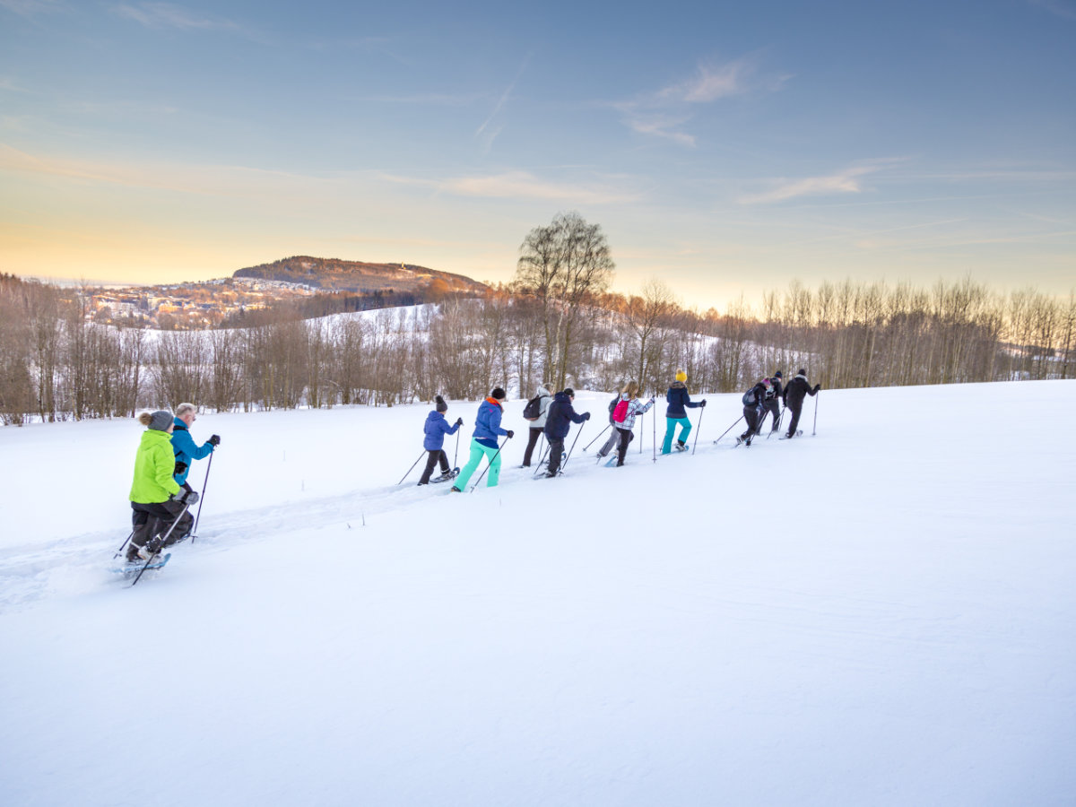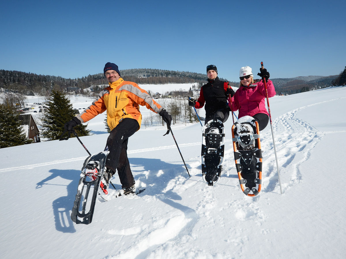 Aussichtsreiche Schneeschuhwanderungen führen abseits von Loipen und Pisten mitten hinein in die herrliche, unberührte Winterlandschaft von Sachsens Mittelgebirgen. Als entschleunigte Alternative zum Skilaufen hat sich Schneeschuhwandern zu einer beliebten Sportart für Jung und Alt entwickelt.