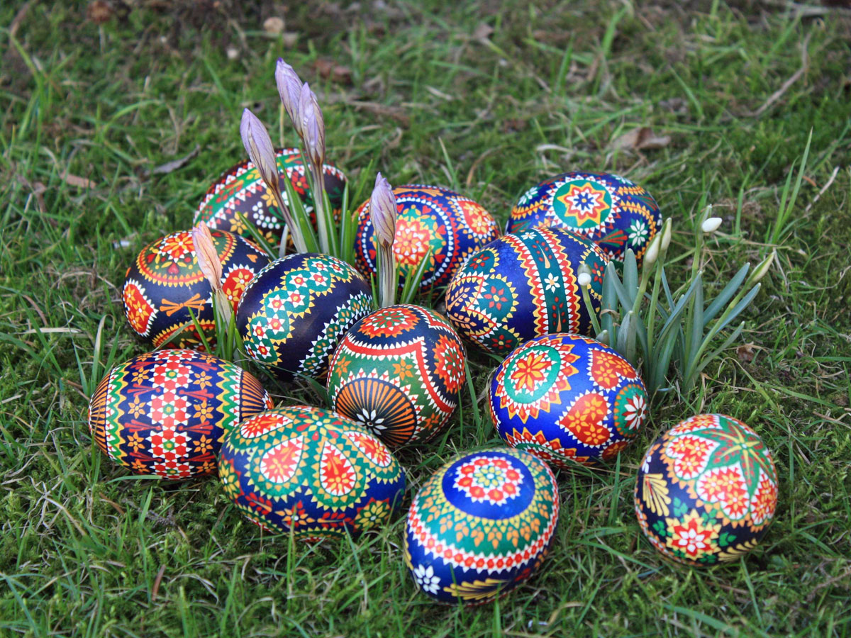 Wunderschön verzierte, farbenfrohe Ostereier gehören zu den bekanntesten sorbischen Traditionen. Sie entstehen unter versierten Händen in vier Haupttechniken: dem Wachsen, dem Wachsbossieren, dem Kratzen und Ätzen. Geschmückt werden die Eier mit filigranen Mustern wie Sternen, Sonnenrädern, Blumen oder Ranken.