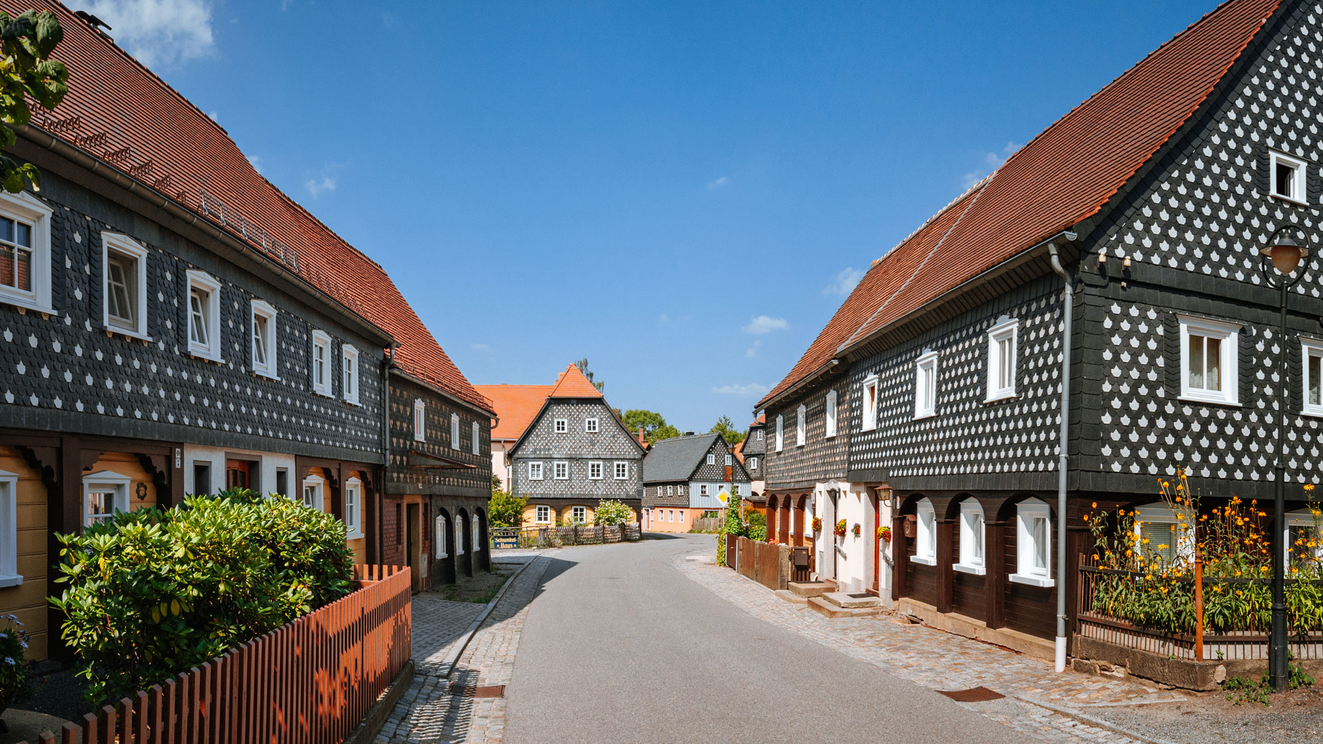 Einzigartige Holzhäuser mit historischem Charme prägen die hübschen Dörfer der Oberlausitz.