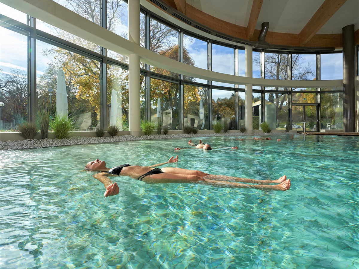 Das Thermalwasser der Soletherme Bad Elster im waldreichen Vogtland kommt aus 1.200 Metern Tiefe. Es enthält neben einem hohen Natriumsulfat- und Chloridanteil zahlreiche förderliche Inhaltsstoffe wie Silikate, seltene Erden oder auch Spurenelemente. Drei Becken mit einem Solegehalt zwischen sechs und 15 Prozent versprechen eine erholsame Auszeit vom Alltag und ein echtes Antistress-Programm für Kopf und Körper. Im Salzsee, im Licht-Klangbad und im Hutzn-Bad kann man regelrecht durchs Wasser schweben.