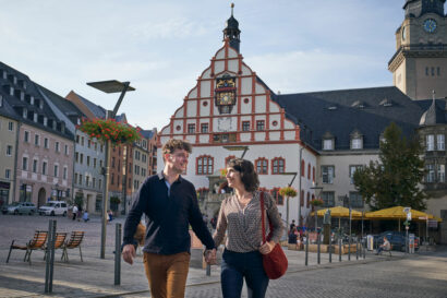 Ebenfalls idyllisch eingebettet im Tal der Weißen Elster liegt Plauen. Ein spannender Rundgang durch den pittoresken Altstadtkern mit vielen Sehenswürdigkeiten, schmalen Gassen und kleinen Plätzen sollte bei einem Aufenthalt ebenso auf dem Programm stehen wie ein Besuch der urigen Lokale mit vogtländischer Küche.
