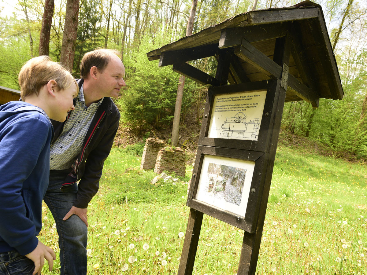 Nach ungefähr drei weiteren Wanderkilometern ist es am südöstlichsten Punkt des Göltzschtal-Rundweges in Mühlwand Zeit zum Umkehren. Ein Abstecher zum ehemaligen Alaunwerk ist aber noch drin: Hier wurde zwischen 1691 und 1827 Alaunschiefer gefördert. Heute öffnet das Alaunwerk Mühlwand als Besucherbergwerk an Wochenenden und Feiertagen. Dann sind Führungen zu Stollen, Schächten und einer Tropfsteingrotte möglich.