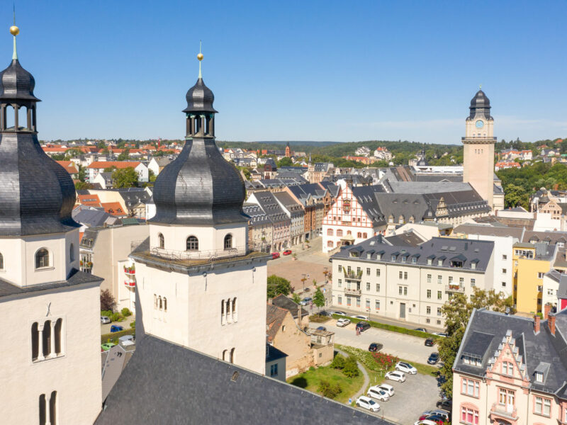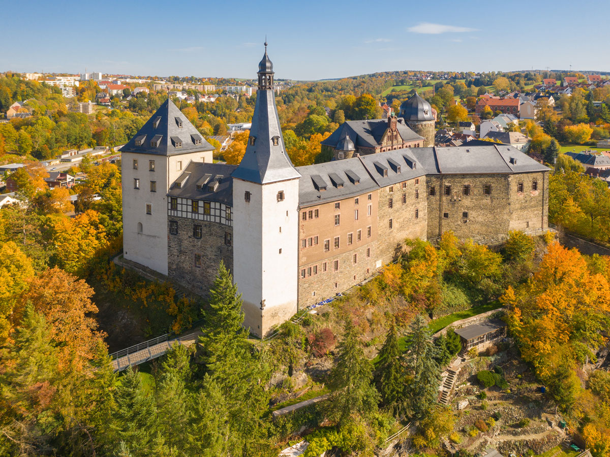 Bergfried und Vierecktürme der Burg Mylau zeugen von deren Ursprüngen im Mittelalter. Foto: Archiv TV Vogtland e. V./Sebastian Theilig