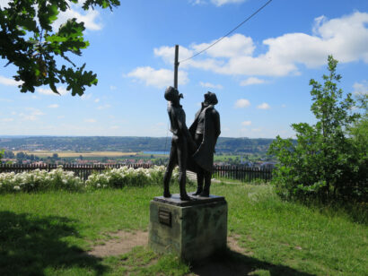 Auch an der Bronzeplastik der “Sterngucker” an der Radebeuler Volkssternwarte eröffnet sich eine grandiose Aussicht. Foto: Matthias Weber