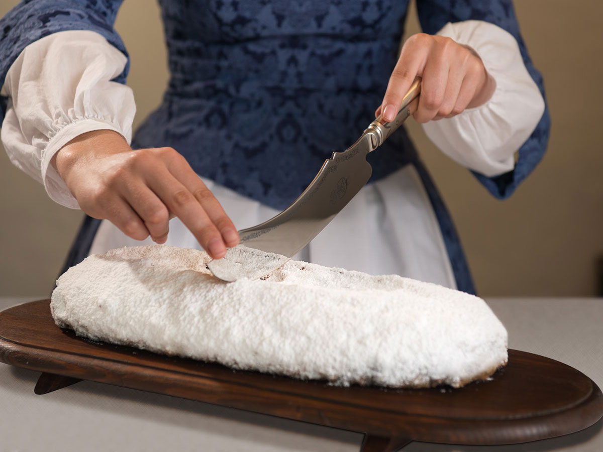 Traditionell wird der Stollen am ersten Advent oder an Heiligabend angeschnitten. Foto: Schutzverband Dresdner Stollen e. V./Katharina Grottker (DML-BY)